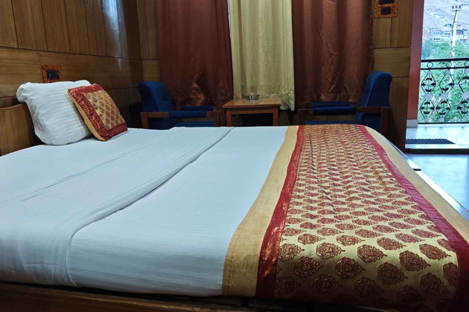 The Deluxe Double Room at Hotel Ech Aar is designed to provide a comfortable and relaxing stay for couples or two guests. The room features a cozy double bed, clean interiors, and all the essential amenities required for a pleasant stay. Large windows allow natural light to brighten the space while offering beautiful views of the surrounding mountains. It is an ideal choice for travelers looking for comfort, convenience, and a peaceful environment in Kargil.